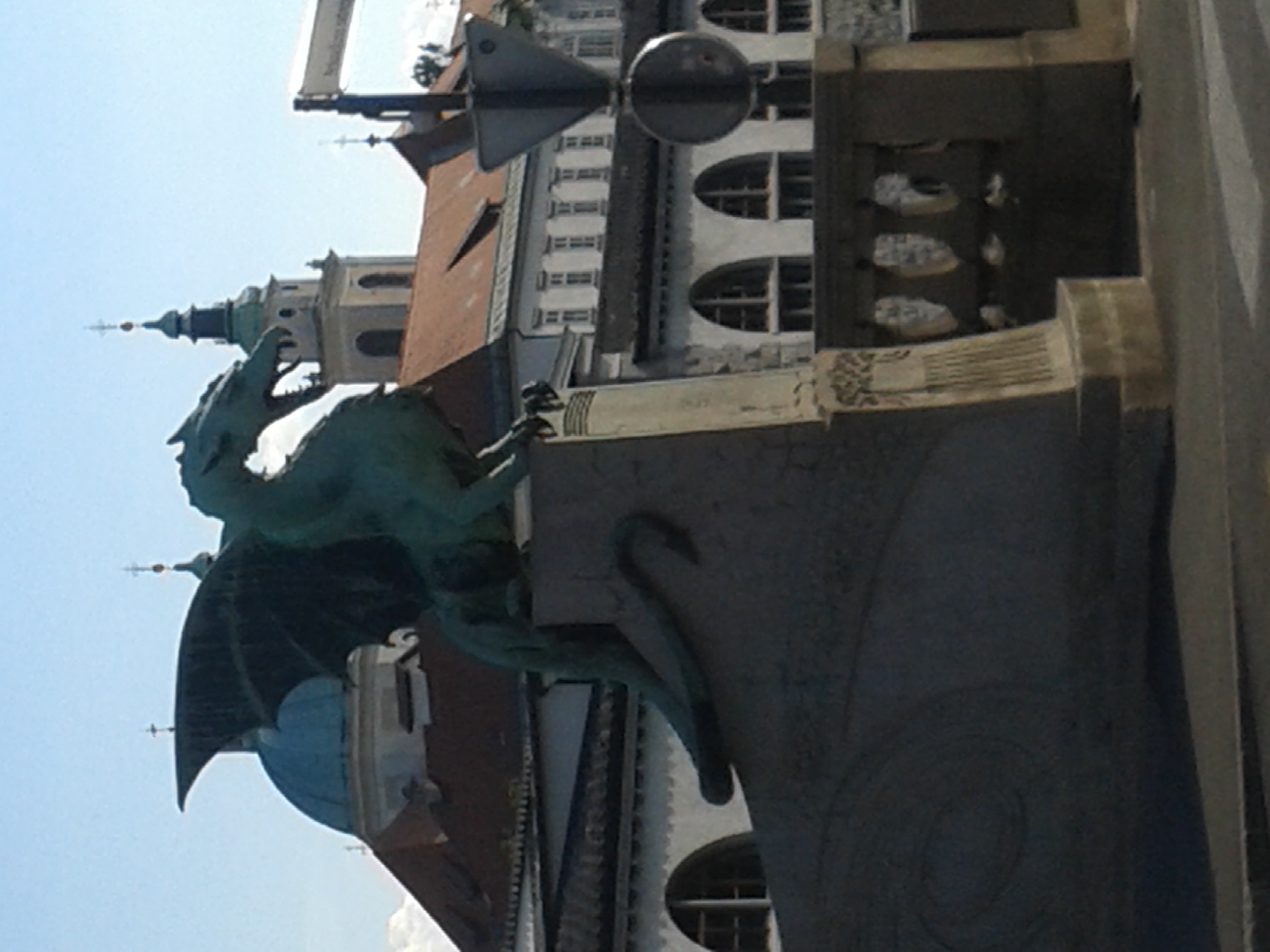 Allora abbiamo iniziato a raccontargli dei draghi di Lubiana. Gli stessi draghi che avevamo visto in varie parti della città nel pomeriggio. Quei draghi che potevamo sbirciare, se ci avessero onorati di una comparsa, nei cerchi di cristallo scavati nel pavimento.